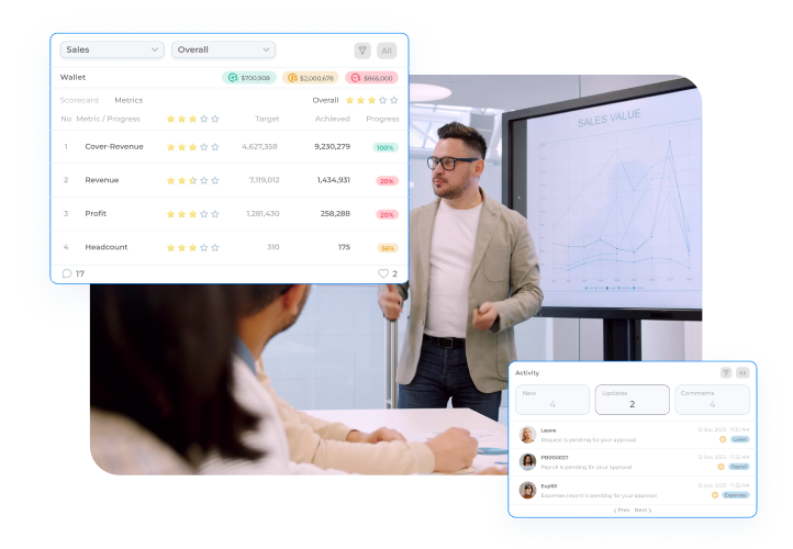 Use Swivelt’s iStrives for task management, along with tools for leave tracking, expenses, and more. As your business grows, seamlessly integrate advanced features like performance management, and gamification to drive performance & motivate your teams.